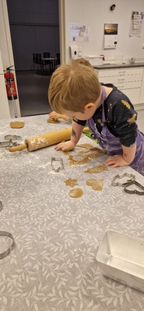 Vi har hatt adventsamling kvar morgon, der vi har hatt nedtelling til jul med å henge opp hjerte i vinduet. Vi har også laga mange fine julegåver, hatt trekking av adventsbarn som får opne den magiske boksa. Iår har vi også fått vore med tradisjonane til skulen med fakkeltog gjennom bygda, veldig stemningsfullt og firnt å vere med på. Vi har og fått prøve skulekjøkkenet der vi baka pepperkaker.