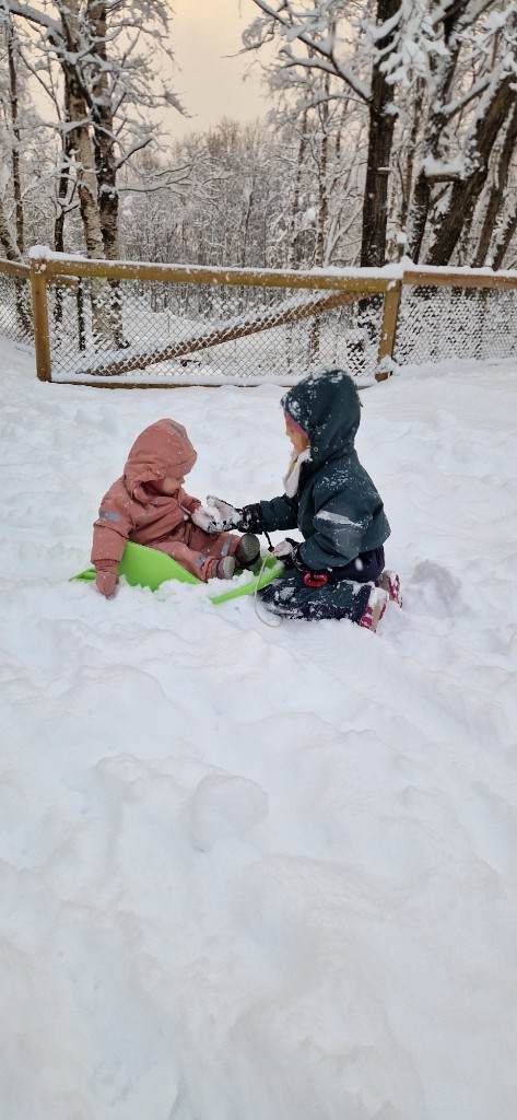 Førjulstida er alltid kjekk i barnehagen og ekstra kjekt var det når vi fekk snø som vi kunne kos oss med.